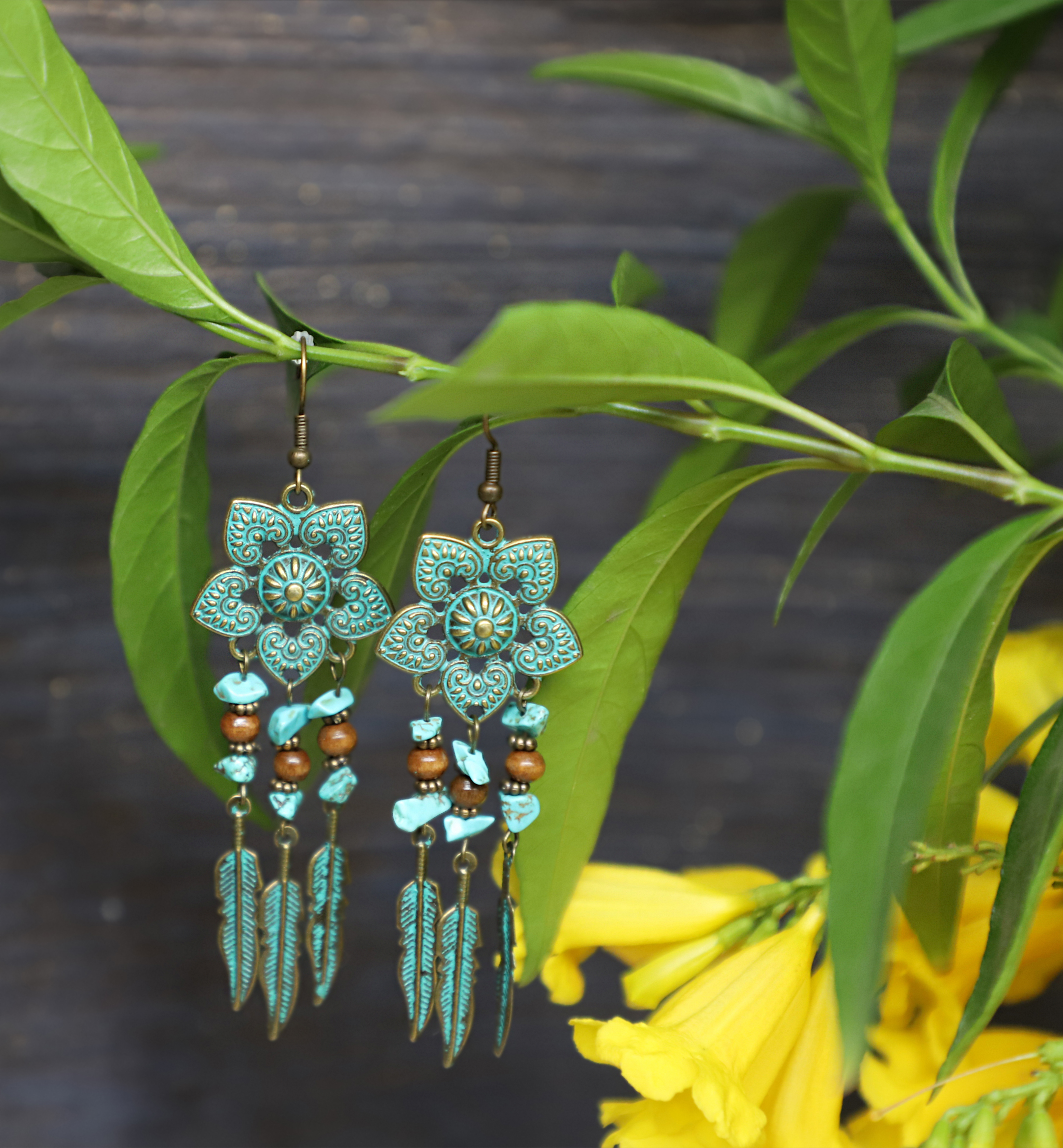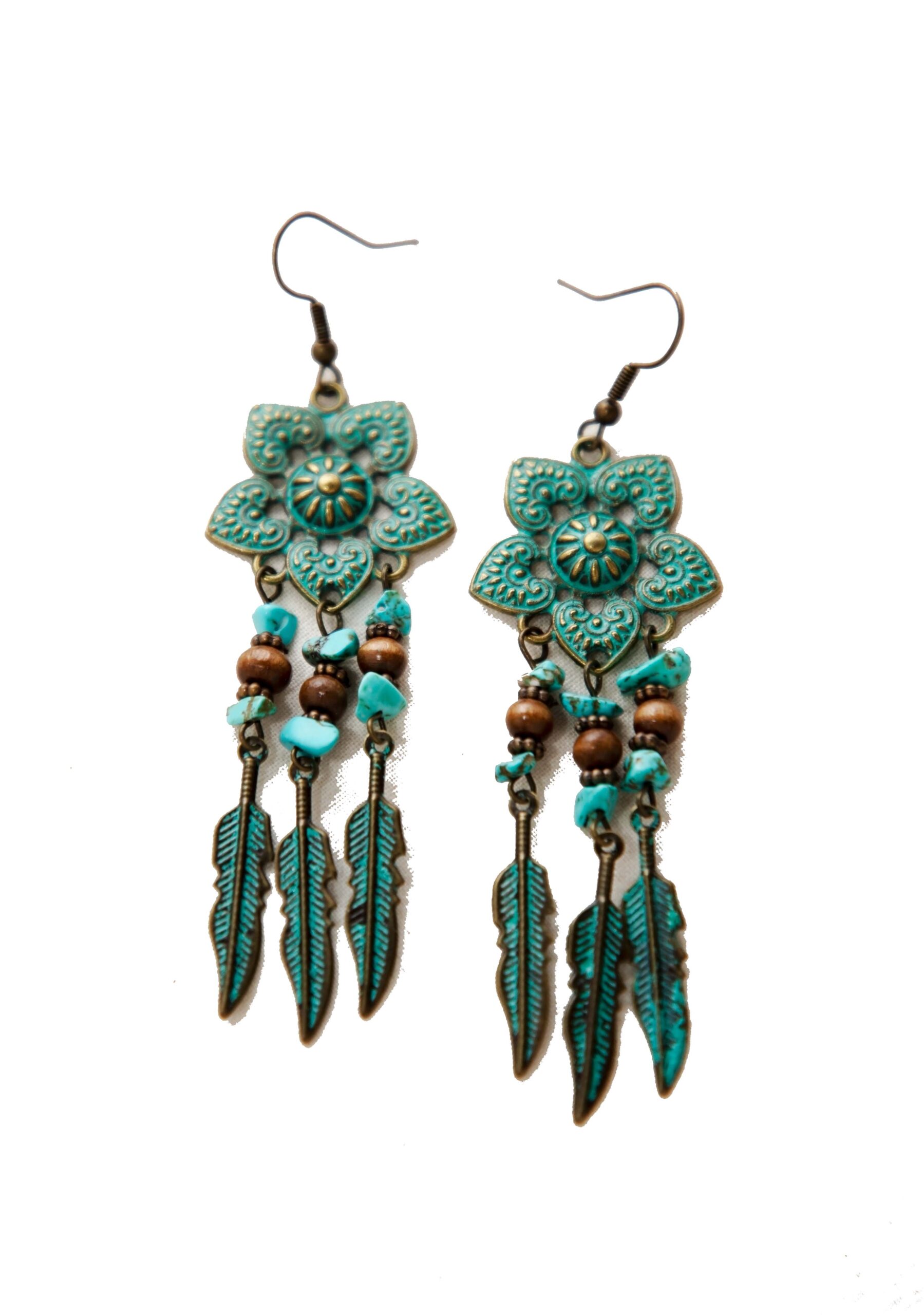 Antique Green Floral & Beaded Drop Jewellery for women